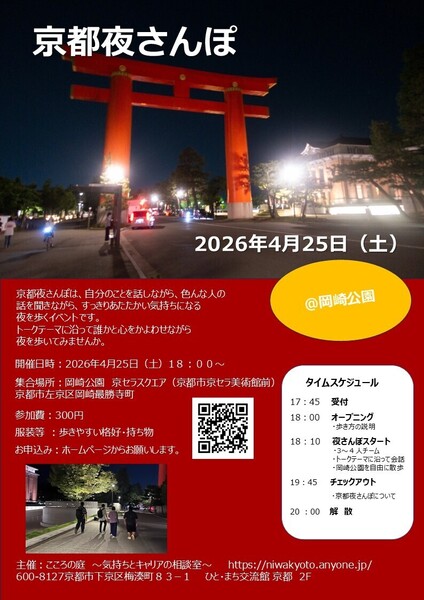 4月25日(土)に京都市で夜さんぽが開催されます。主催者の方は何度も夜さんぽへご参加くださり、私たちも資料等の提供を通じて開催に協力をしています。よかったらご参加くださいね